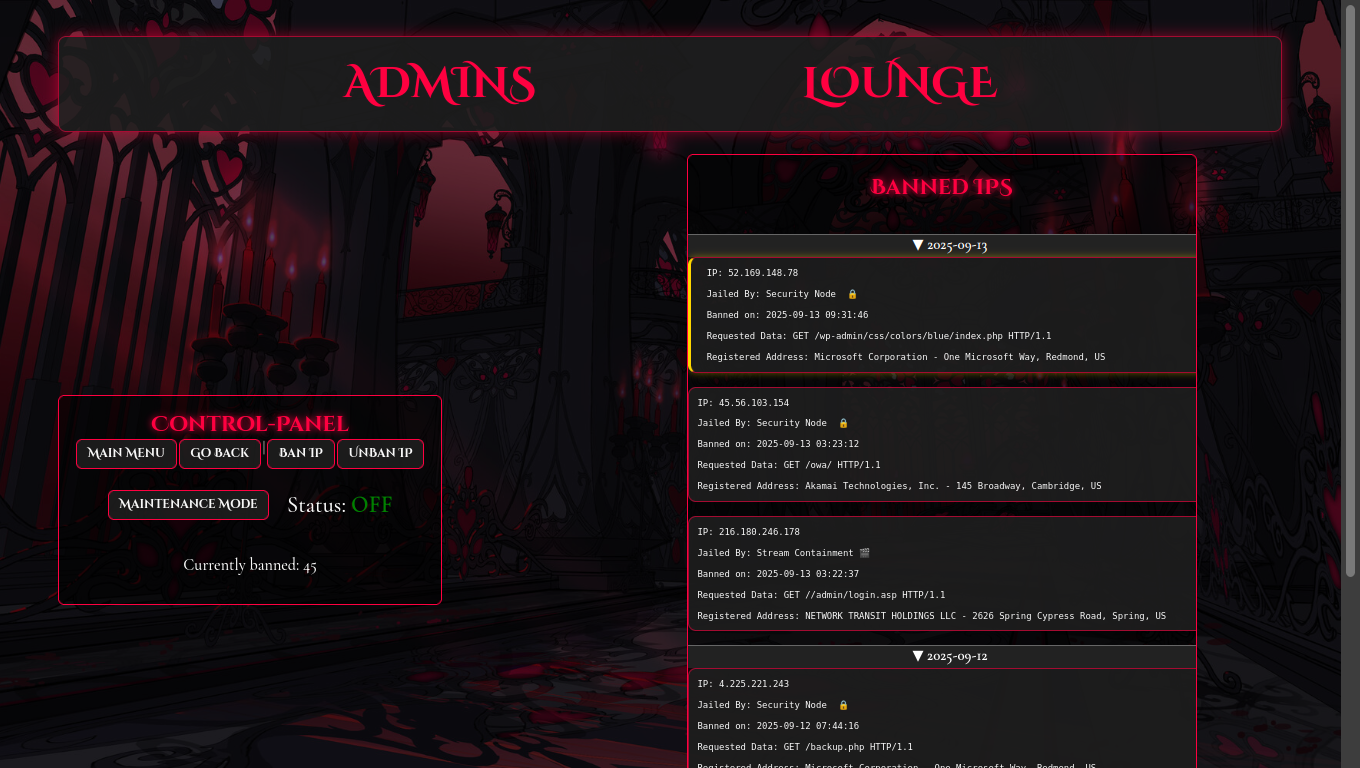 More advanced web UI - Manual Ban Controls, Maintenance Mode(site override to custom 503), stats display